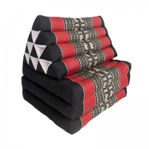 The Thai triangle cushion, made up of three foldable sections, evokes the image of the reclining Buddha on the verge of entering Nirvana (the ultimate goal of Buddhist practice, the end of existence). He lies on his right side, resting on his elbow, with his head supported by his right hand or resting on a cushion. The Thai triangle cushion reflects the posture and symbolism of the reclining Buddha.